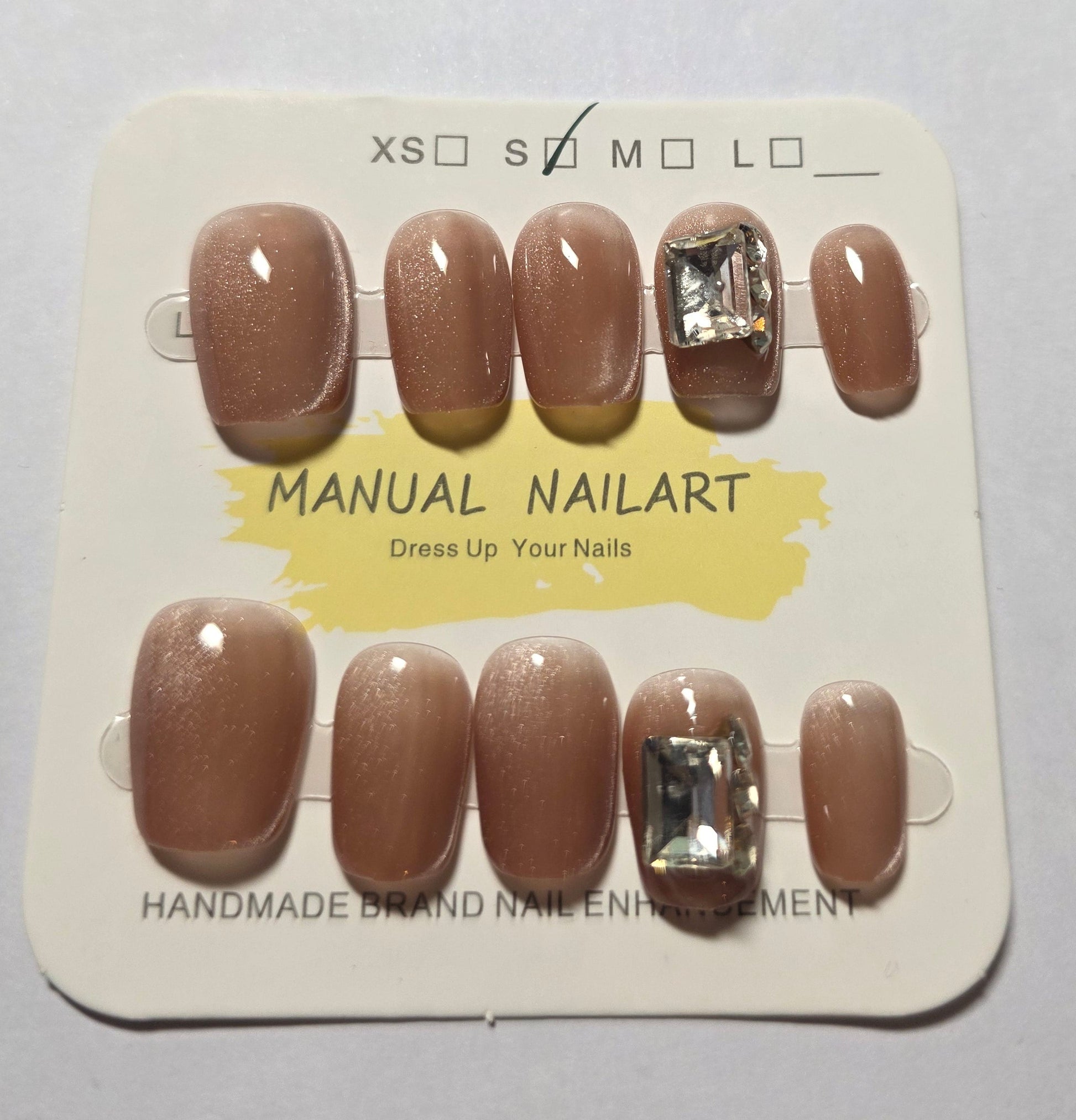 Achieve a polished, elegant look in minutes with these shiny mocha press-on nails, designed to fit small nails to the tea.Their smooth, glossy finish adds a chic touch to your style, making them ideal for both everyday wear and special events. Easy to apply and remove, they provide a quick, mess-free manicure that lasts. Transform your nails with effortless beauty and confidence.